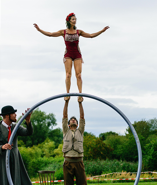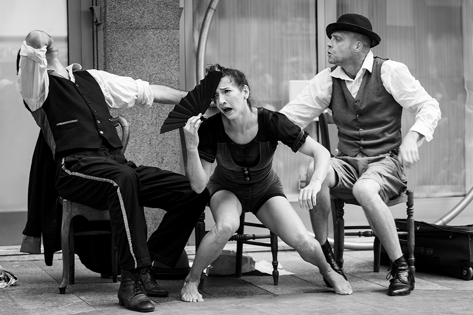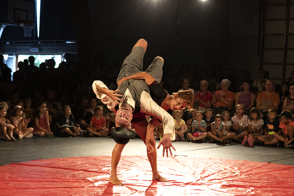 La compagnie naît en 2016, avec pour objectif la création d’une œuvre de salle qui combinera les techniques circassiennes et le théâtre physique. Les recherches artistiques des créateurs empruntent le même chemin, adoptant comme langage scénique la fusion entre le théâtre et le cirque. Ce qui nous intéresse c’est le passage de la performance du show à la poésie théâtrale, et le lien profond entre les compétences circassiennes et la dramaturgie. Par cette dynamique, le texte va modifier la performance des acrobates, qui va au-delà de la simple performance physique.